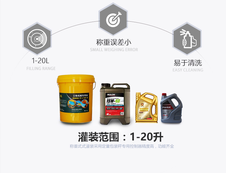 半自動(dòng)油脂灌裝機(jī)可以灌裝1-20L不等的各類食用油、潤滑油等,并且半自動(dòng)油脂灌裝機(jī)體形較小,移動(dòng)方便,多適用于中小型 的油脂生產(chǎn)廠家,幫助廠家實(shí)現(xiàn)更快、更的油脂灌裝。半自動(dòng)油脂灌裝機(jī)的兩個(gè)頭由兩個(gè)泵分別控制,灌裝量更加并且速度也大大提高。單頻變頻器調(diào)速,克服分布不均的現(xiàn)象。有極高的穩(wěn)定性,當(dāng)某一站管道堵塞時(shí),不會(huì)影響其他站,造成灌裝精度的變化。